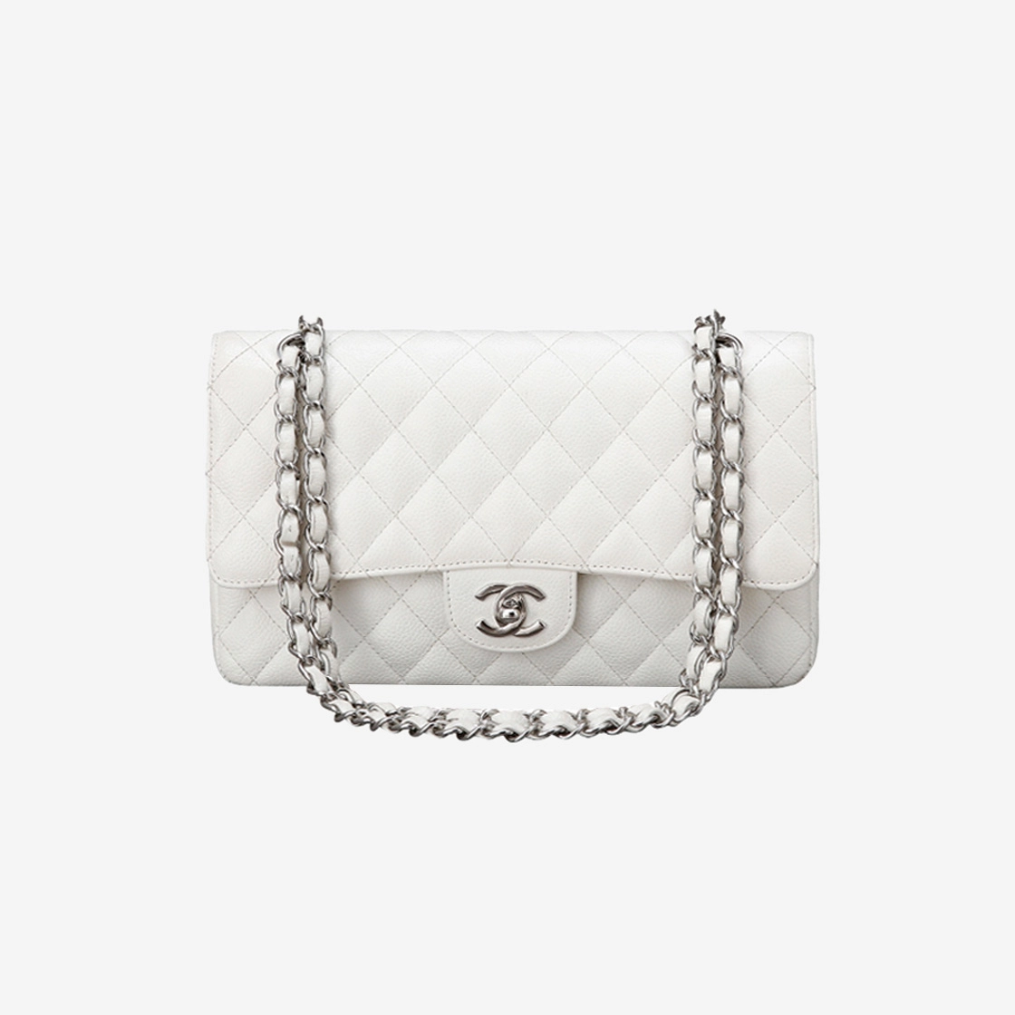 (W) 샤넬 클래식 캐비어 미디움 화이트 실버 【매장-1600만원대】