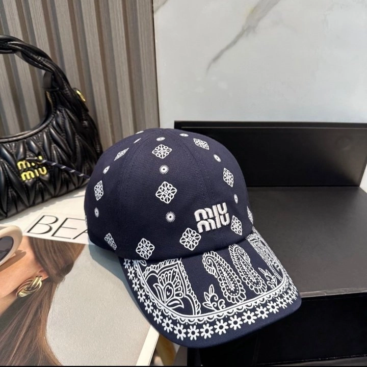 [국내배송] 미우미우 네이비 프린티드 코튼 볼캡 508A