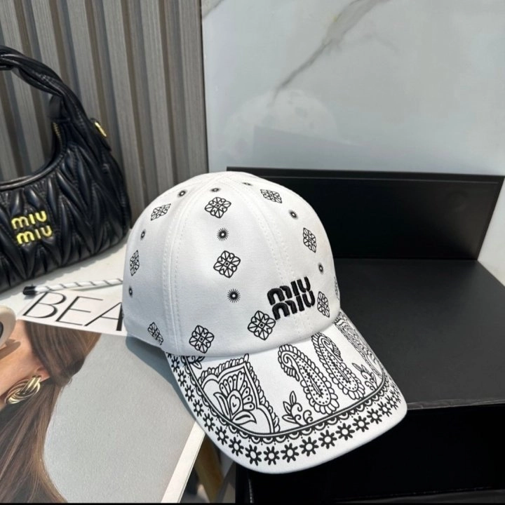 [국내배송] 미우미우 화이트 프린티드 코튼 볼캡 508A
